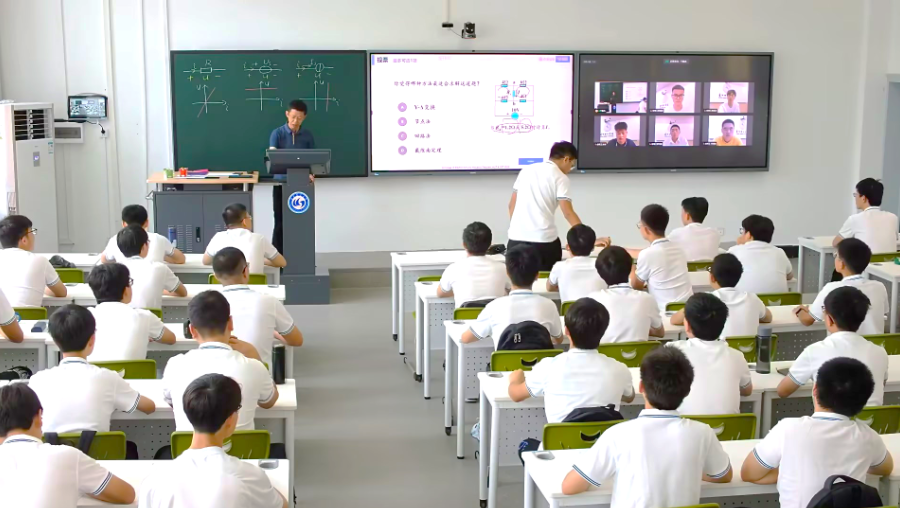 活動期間,懷進鵬部長一行還在南湖校區(qū)智慧教室,調(diào)研觀摩了一堂生動的數(shù)字化教學(xué)課堂。