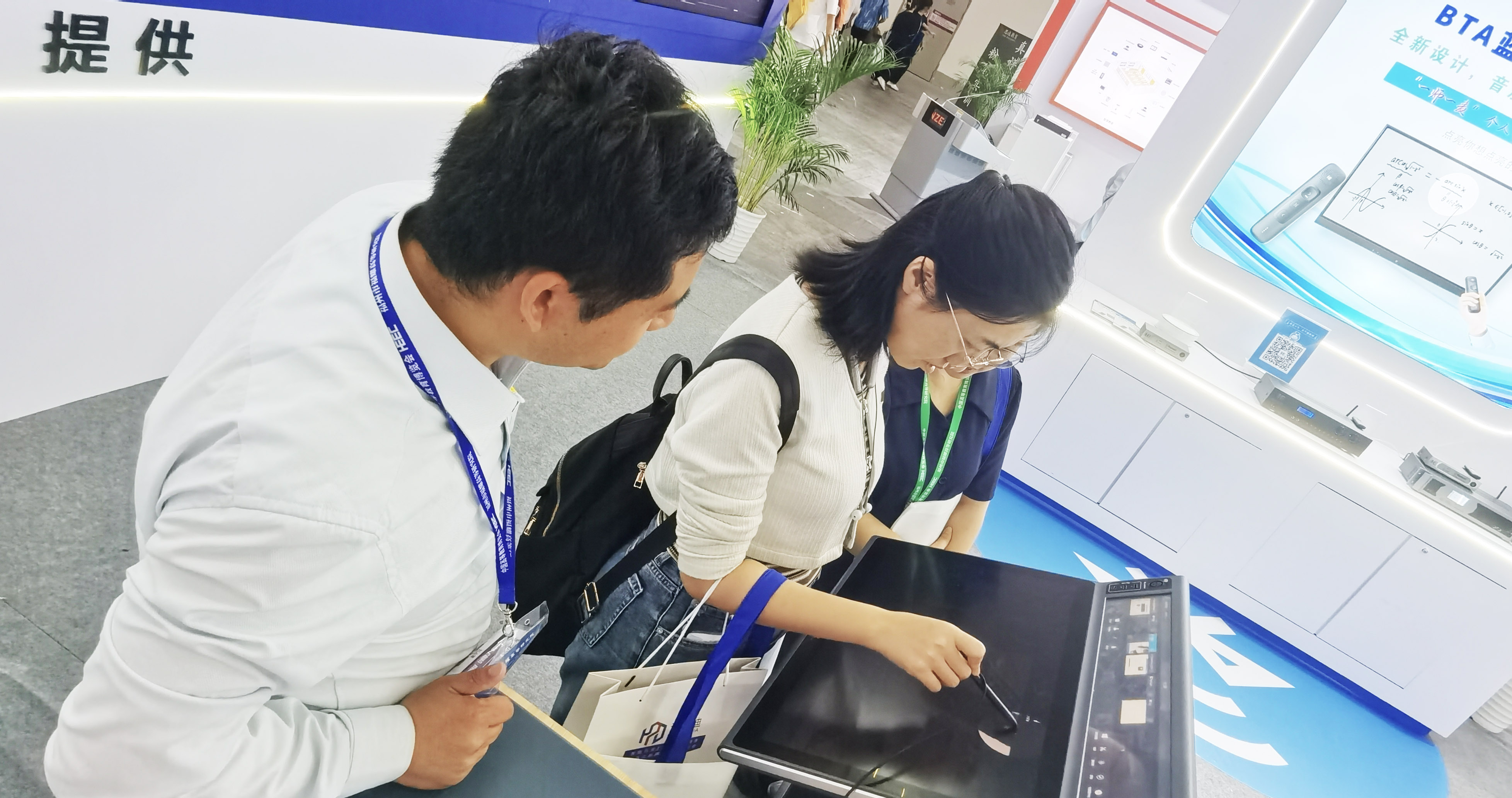此次展出的課堂教學(xué)生產(chǎn)力工具—Pen-Link智能交互書寫終端,在現(xiàn)場(chǎng)獲得了極大的關(guān)注。高等教育學(xué)會(huì)副會(huì)長(zhǎng)李家俊先生也抵達(dá)了華璨展位現(xiàn)場(chǎng)了解相關(guān)產(chǎn)品。該設(shè)備可以讓老師直面學(xué)生進(jìn)行板書的書寫、授課,讓師生交流互動(dòng)更方便。在該設(shè)備上觸控、書寫各不干擾,PPT左手翻,右手寫,應(yīng)用自如。同時(shí),無論是PPT,還是圖片、網(wǎng)頁、視頻等,都可以隨時(shí)書寫、隨時(shí)標(biāo)記。頂部屏幕將打開的應(yīng)用以多視窗形式呈現(xiàn),老師可以一鍵切換,無需復(fù)雜操作,直觀,高效,課堂教學(xué)更連貫。