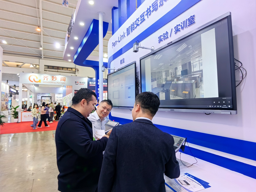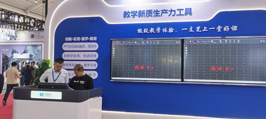 展會現(xiàn)場,華璨電子的展館內(nèi)人聲鼎沸,參觀者絡(luò)繹不絕。公司匠心打造的Pen-Link智能交互書寫系統(tǒng)成為展會的一大亮點(diǎn),吸引了眾多教育專業(yè)人士的駐足體驗與交流。Pen-Link智能交互書寫系統(tǒng)不僅被應(yīng)用教室,同樣還廣泛應(yīng)用于實驗室、實訓(xùn)室、會議室、報告廳等多種場景,為教育行業(yè)的信息化發(fā)展注入了新的活力。